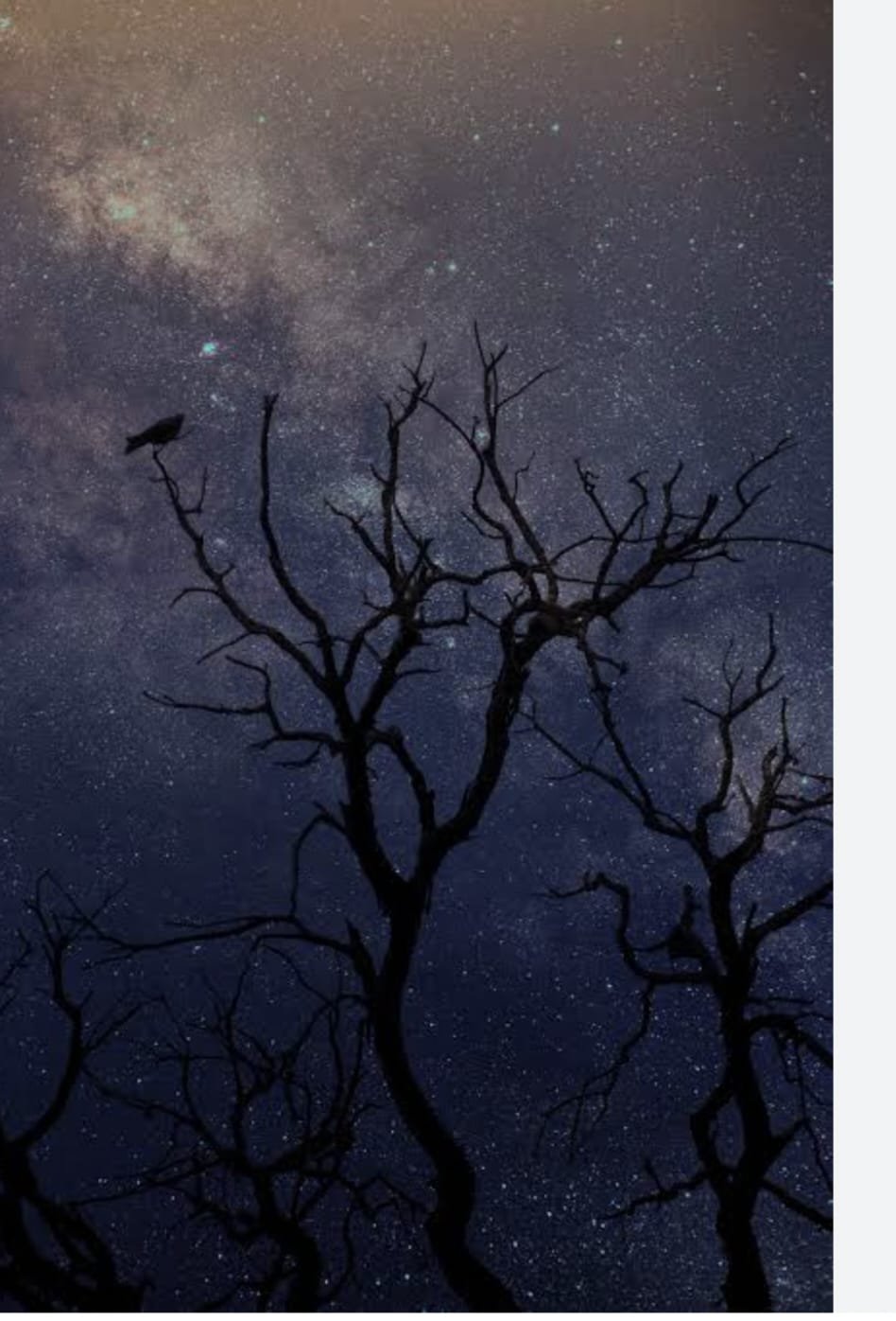 The night was getting dark. An eerie silence engulfed the park. Radha looked at the barren tree. It was empty just like her life. A few drops of tears rolled down her eyes and fell on the floor.
